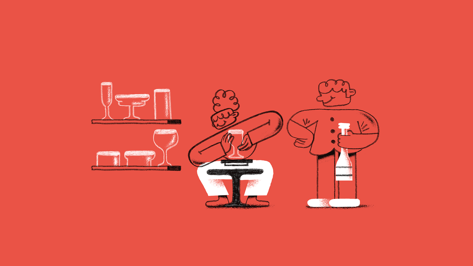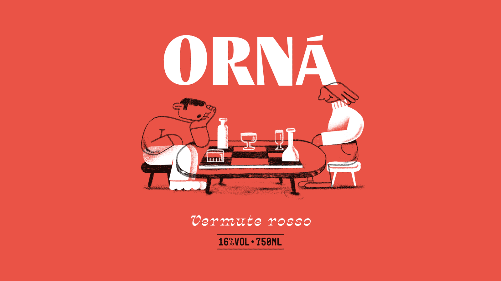 With all this in mind, we created illustrations that comprise the visual identity project developed by Capina studio. The illustrations explore puns on drinks and elements from their surroundings, such as a checkerboard pattern with glasses and a bottle, as a way to highlight Orná's good humor. The visual composition uses hand-drawn textures, lines, and filled shapes, which combine like different ingredients to create a harmonious drink. The hand-drawn textures evoke artisanal style, but stray from the classic, taking on a bold, contemporary approach.